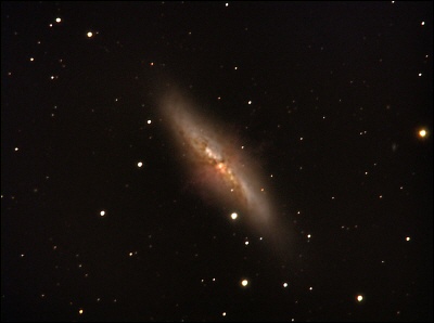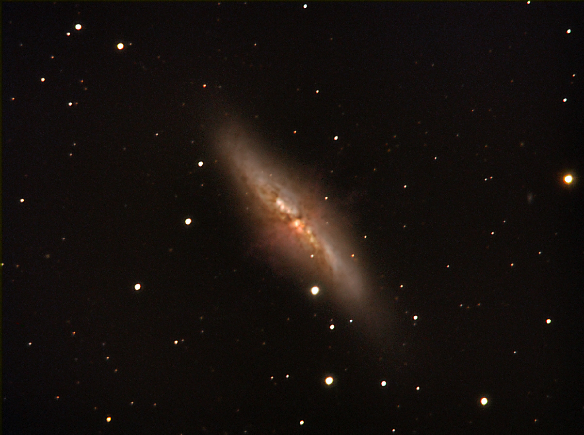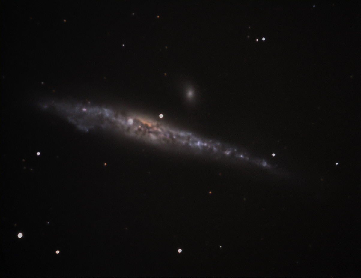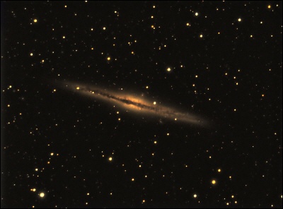 Die Entfernung beträgt 28 Millionen Lichtjahre Eine scheinbare Helligkeit von +9,6 mag Und hat eine Winkelausdehnung von 15,5′ × 2,7′ |