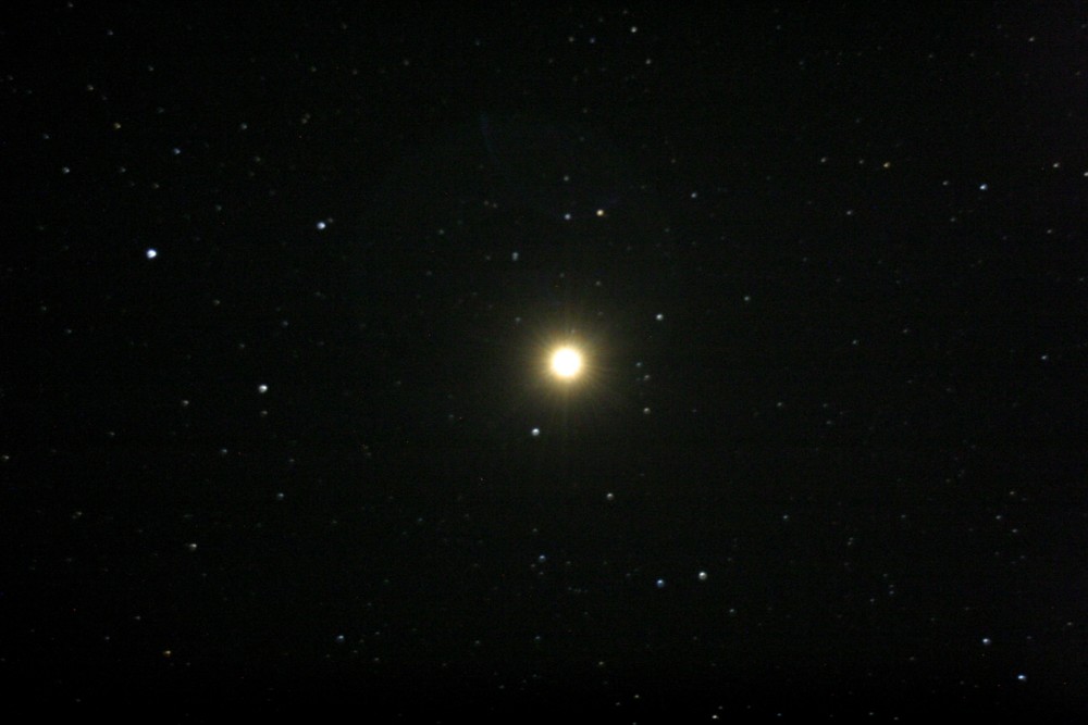 Der Stern a (Alpha) im Orion heißt Beteigeuze (auch: Betelgeuse). Dieser "Rote Riesenstern" trägt seine Bezeichnung zurecht, ist er doch im Durchmesser 662 mal so groß wie unsere Sonne. Die Größenschwankung kommt daher, dass Beteigeuze aufgrund seiner gigantischen Ausmaße nicht stabil bleiben kann.